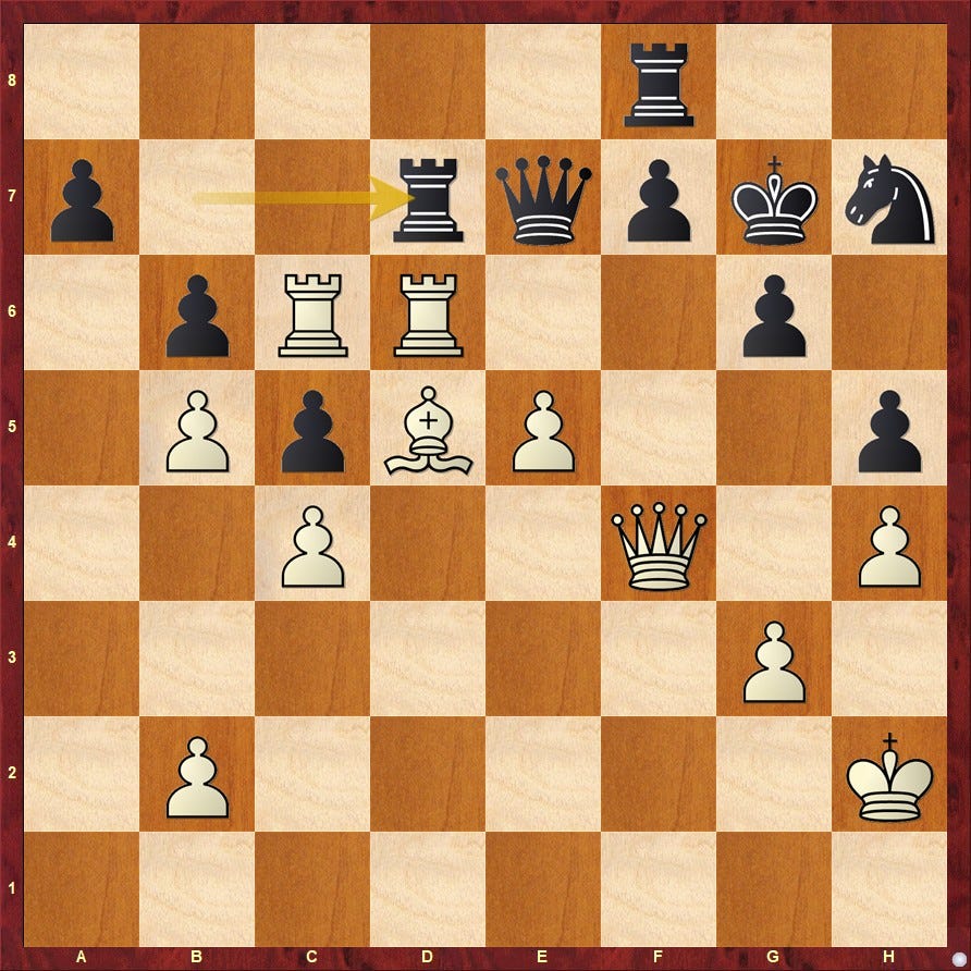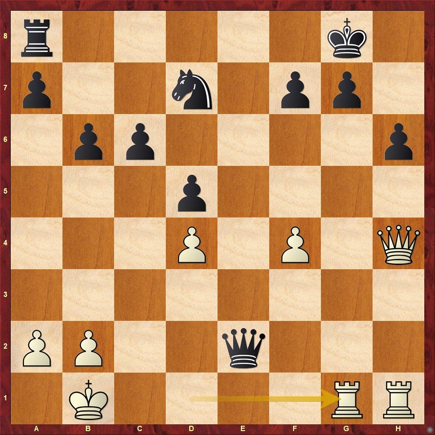 De witspeler, die hier in acute tijdnood verkeert, moet hier initieel een zucht van opluchting hebben geslaakt. Het ziet eruit alsof de gevaarlijke zwarte vrijpion verloren gaat, waarna de vrede snel kan worden getekend. Zijn Kroatische tegenstander heeft echter bloed geroken, en beslist zonder verpinken om het karakter van de stelling radicaal te veranderen.